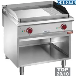 Plancha professionnelle électrique rainurée / lisse en chrome 2 zones sur baie libre DIAMOND profondeur 900mm